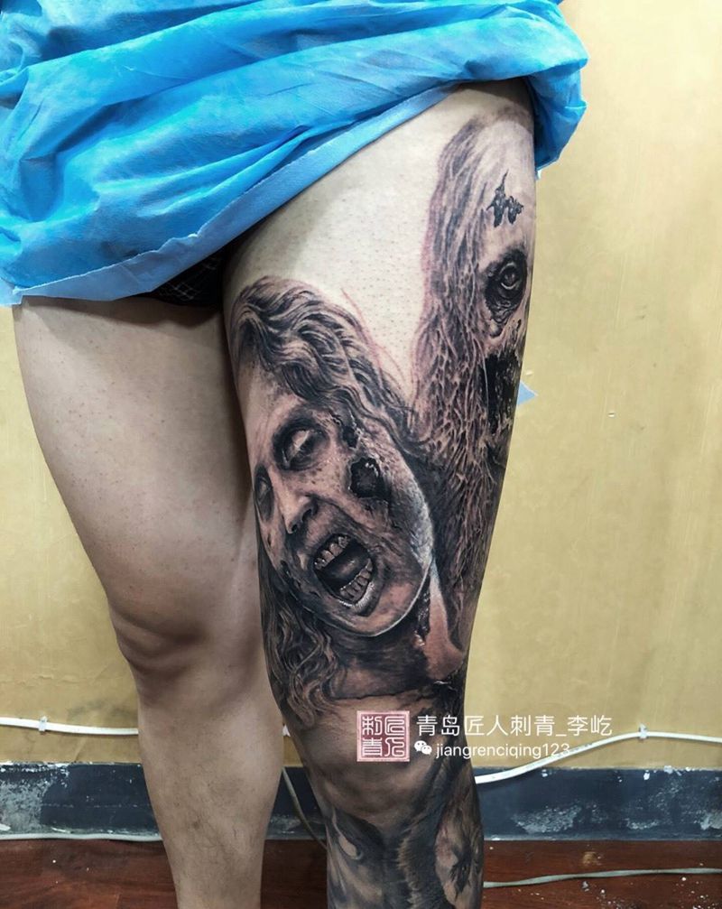 当前位置: 首页 >山东省青岛市纹身店-匠人刺青纹身图案>花腿欧美花腿纹身图片_成品手臂写实人物原创纹身图案