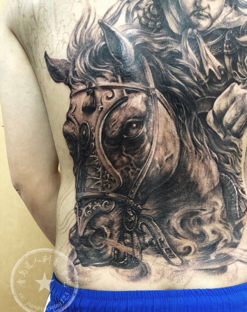 项羽 满背 巨鹿之战纹身图片_成品背部传统写实人物纹身图案
