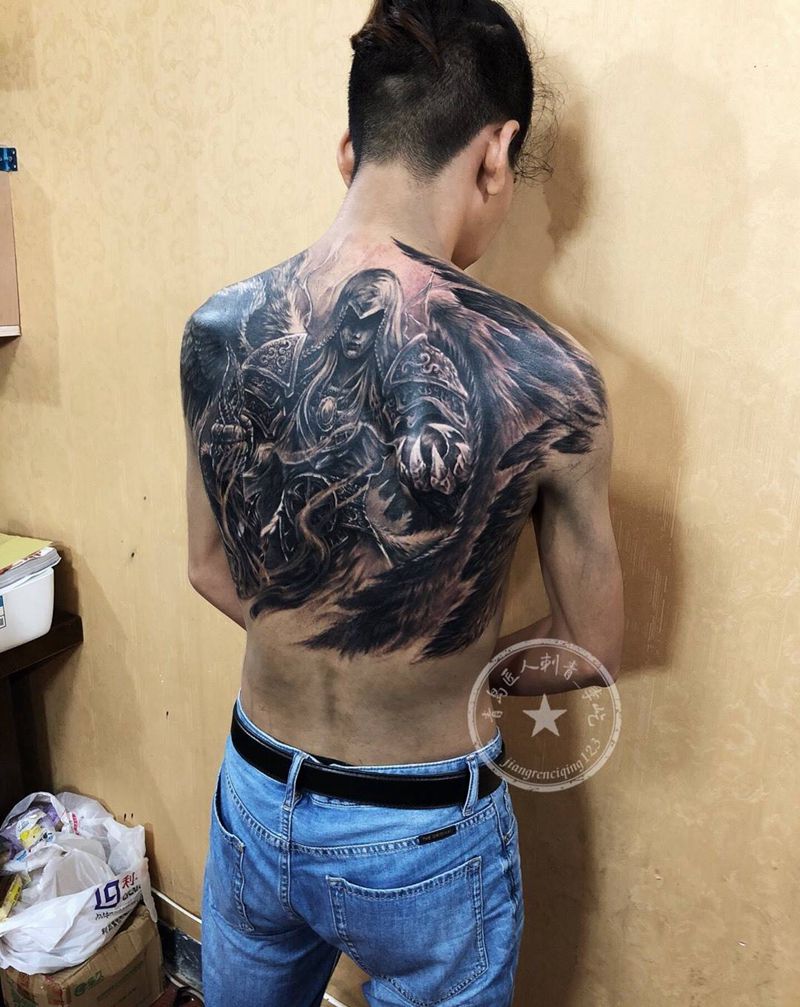 炽天使 天使纹身 暴力遮盖纹身图片_成品背部欧美写实人物鬼神原创纹身图案