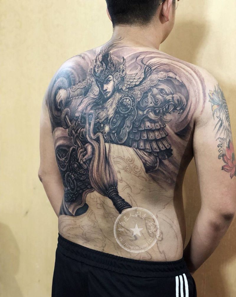 临摹 赵云龙临纹身图片_成品背部传统写实人物纹身图案