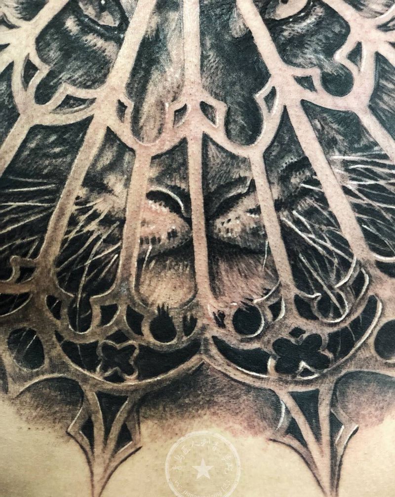 • 黑灰满背纹身图案