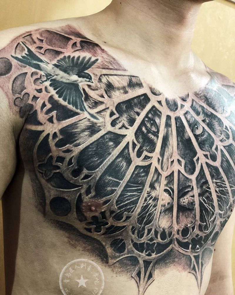 • 男性大花胸_42张优秀的男性大花胸纹身图案图片