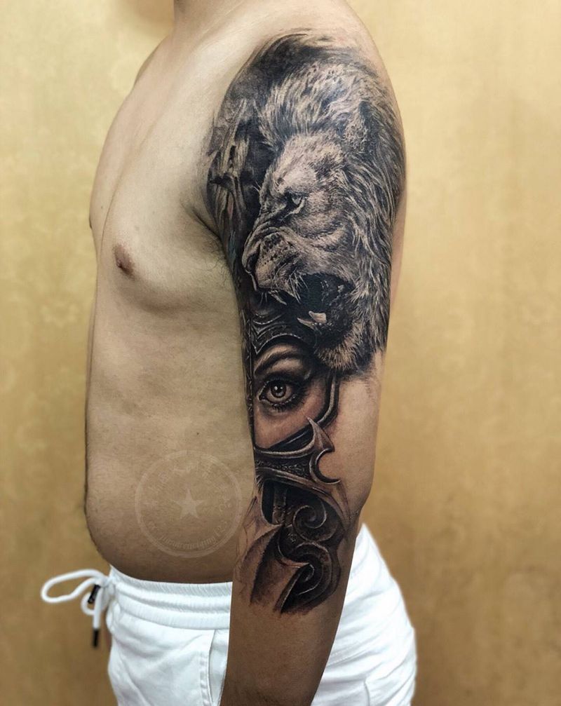 当前位置: 首页 >山东省青岛市纹身店-匠人刺青纹身图案>欧美花臂 七分袖 狮子纹身纹身图片_成品手臂欧美写实人物动物原创纹身图案