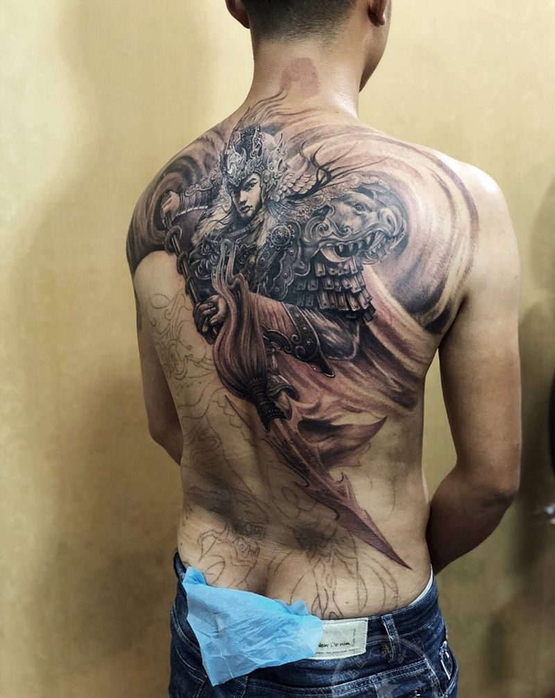 临摹赵云龙临满背纹身图片_成品背部传统写实人物纹身图案