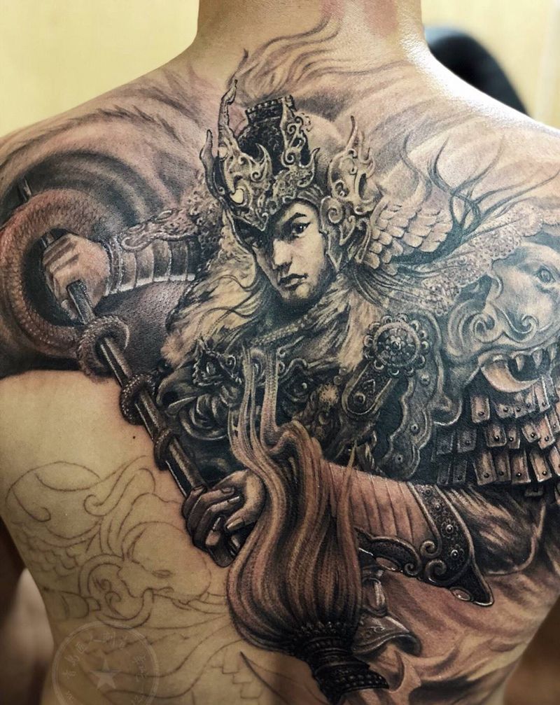 临摹赵云龙临满背纹身图片_成品背部传统写实人物纹身图案