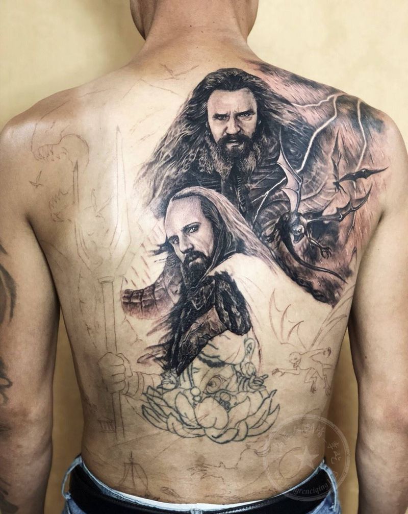 暴力遮盖 满背 诸神之战纹身图片_背部欧美写实哈迪斯宙斯纹身图案