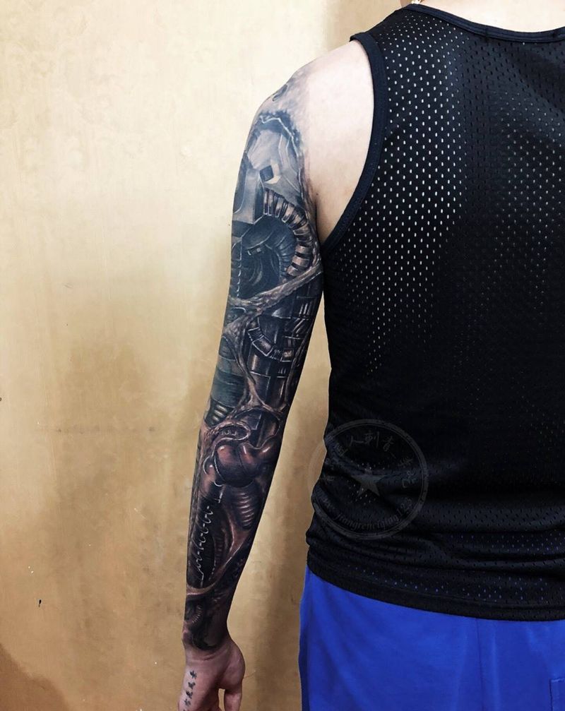 机械臂 遮盖纹身图片_手臂欧美写实机械纹身图案