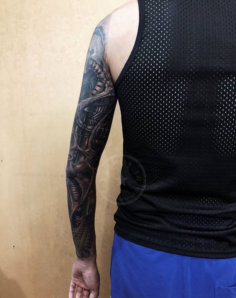 机械臂 遮盖纹身图片_手臂欧美写实机械纹身图案