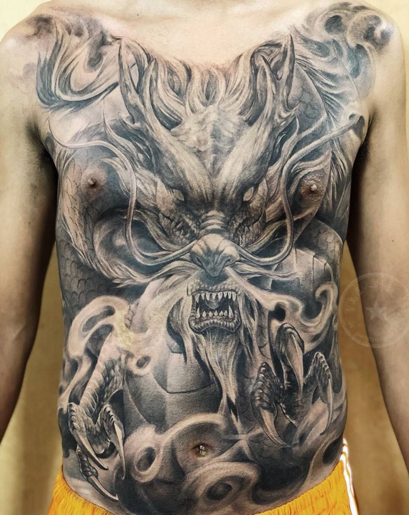 • T云龙九郎纹身图片_背部老传统云龙九郎纹身图案