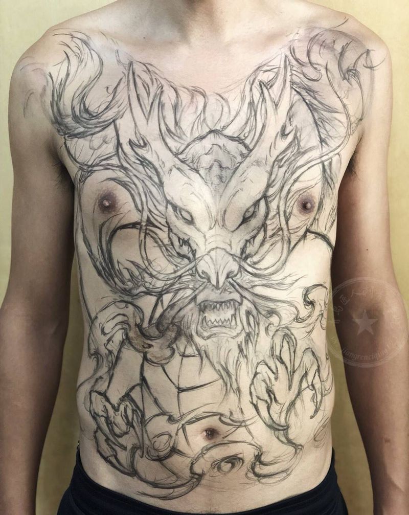 当前位置: 首页 >山东省青岛市纹身店-匠人刺青纹身图案>腾龙纹身图片_背部欧美写实龙纹身图案