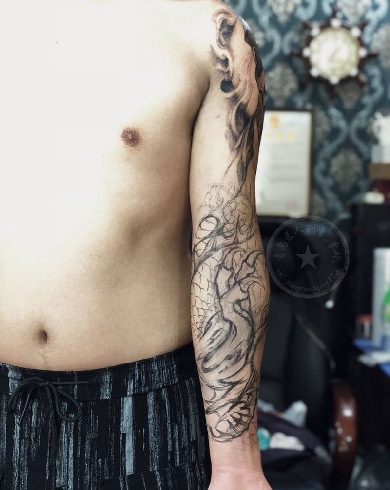 当前位置: 首页 >山东省青岛市纹身店-匠人刺青纹身图案>观音菩萨花臂纹身图片_手臂新传统观音 龙纹身图案