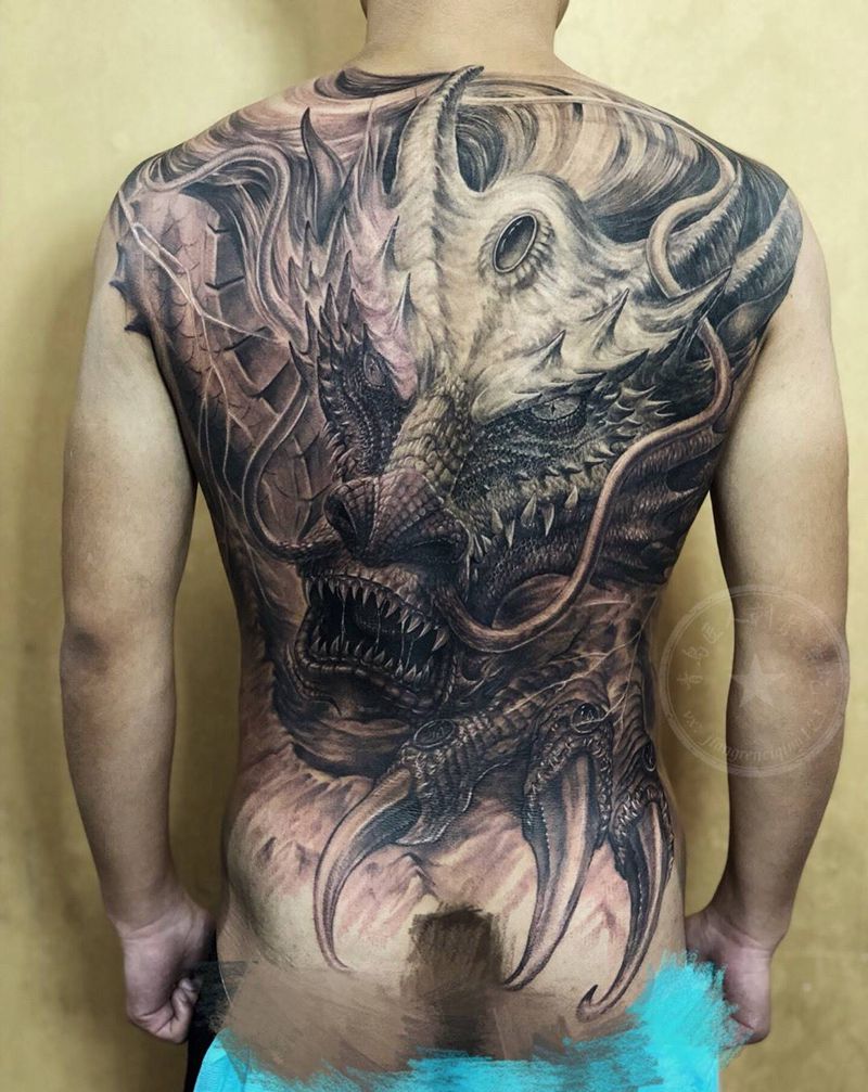 当前位置: 首页 >山东省青岛市纹身店-匠人刺青纹身图案>临摹 龙背山纹身图片_背部新传统龙纹身图案