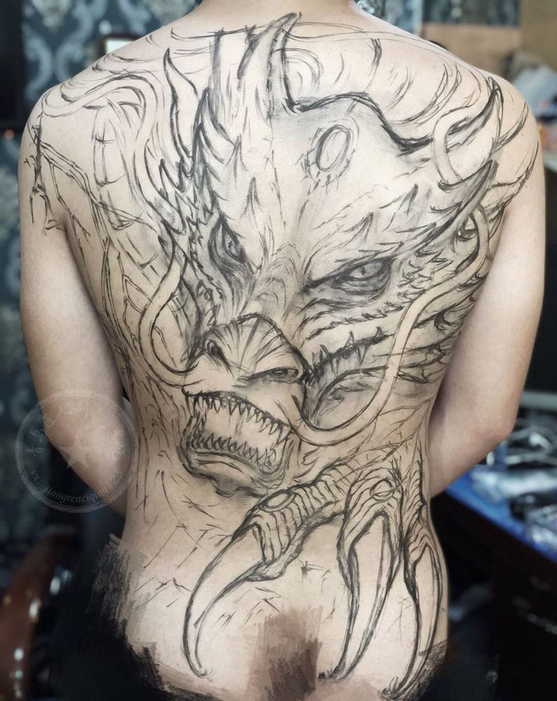 当前位置: 首页 >山东省青岛市纹身店-匠人刺青纹身图案>临摹 龙背山纹身图片_背部新传统龙纹身图案