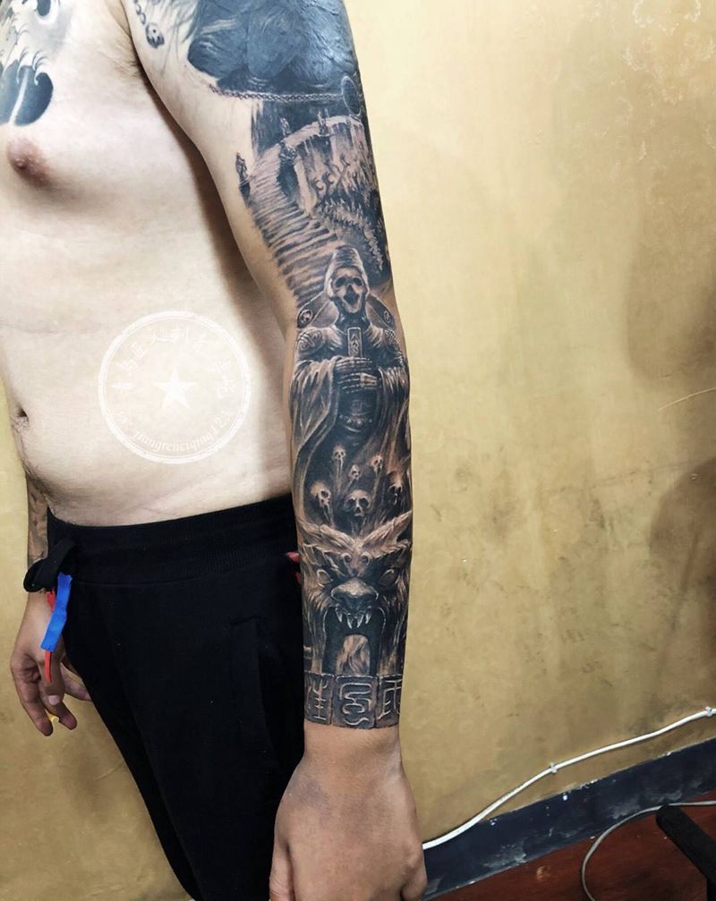 当前位置: 首页 >山东省青岛市纹身店-匠人刺青纹身图案>暴力遮盖接花臂未完成纹身图片
