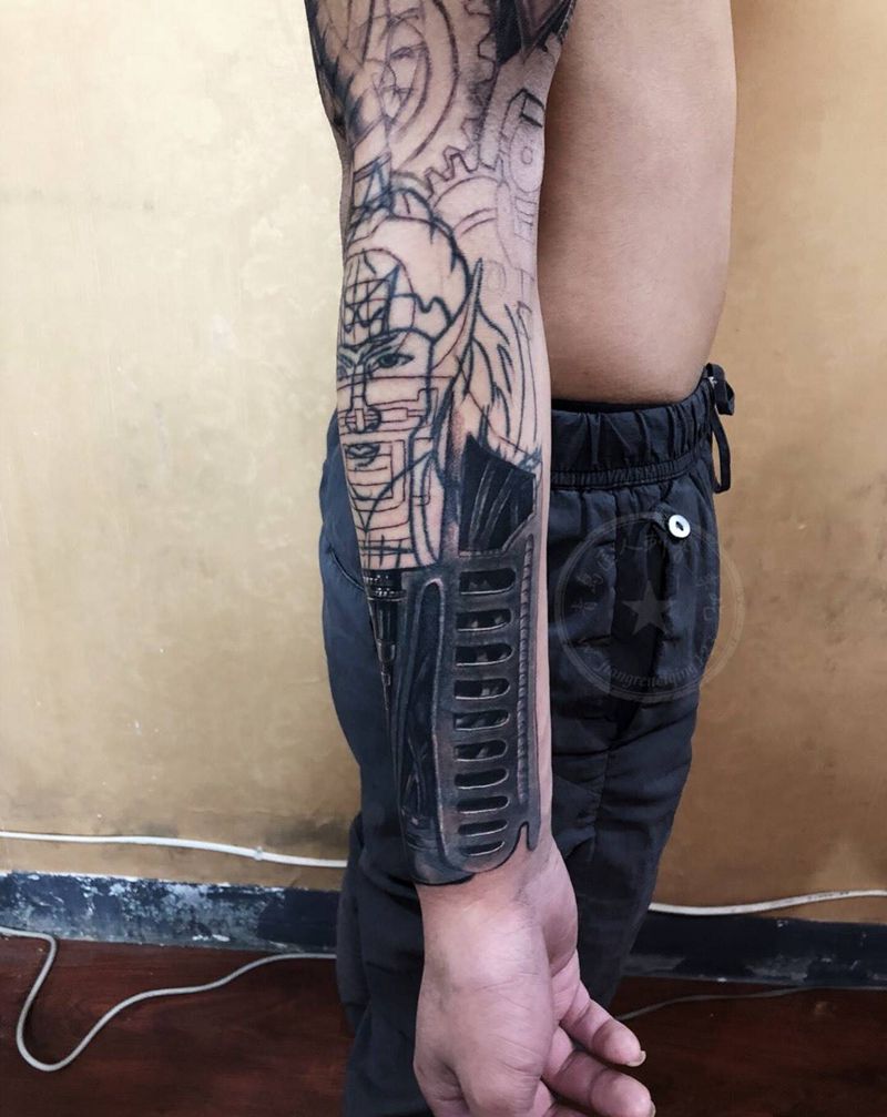 当前位置: 首页 >山东省青岛市纹身店-匠人刺青纹身图案>机械臂暴力遮盖纹身图片_手臂欧美写实机械纹身图案