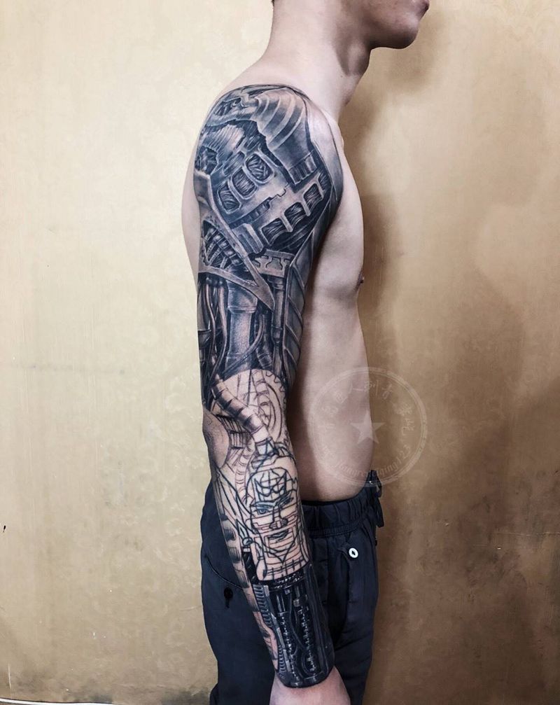 机械臂暴力遮盖纹身图片_手臂欧美写实机械纹身图案