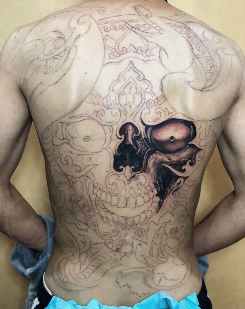 嘎巴拉满背 写实版纹身图片_背部欧美写实嘎巴拉纹身图案