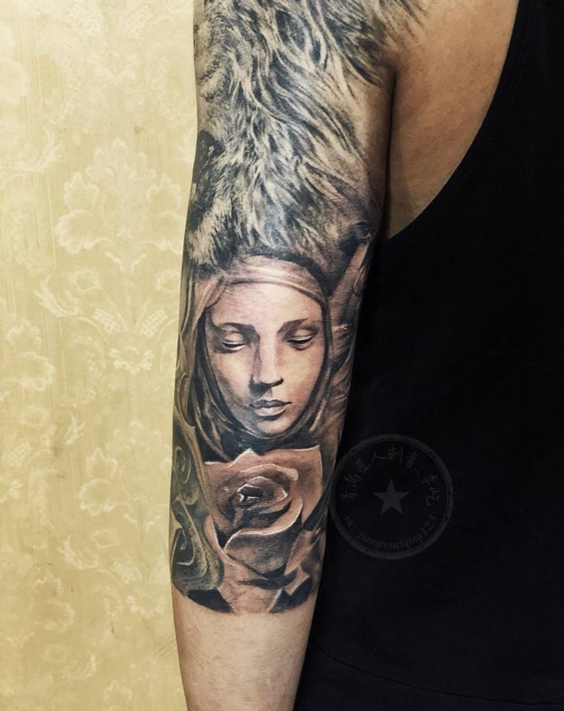 当前位置: 首页 >山东省青岛市纹身店-匠人刺青纹身图案>欧美六分袖纹身图片_手臂欧美写实古罗马纹身图案