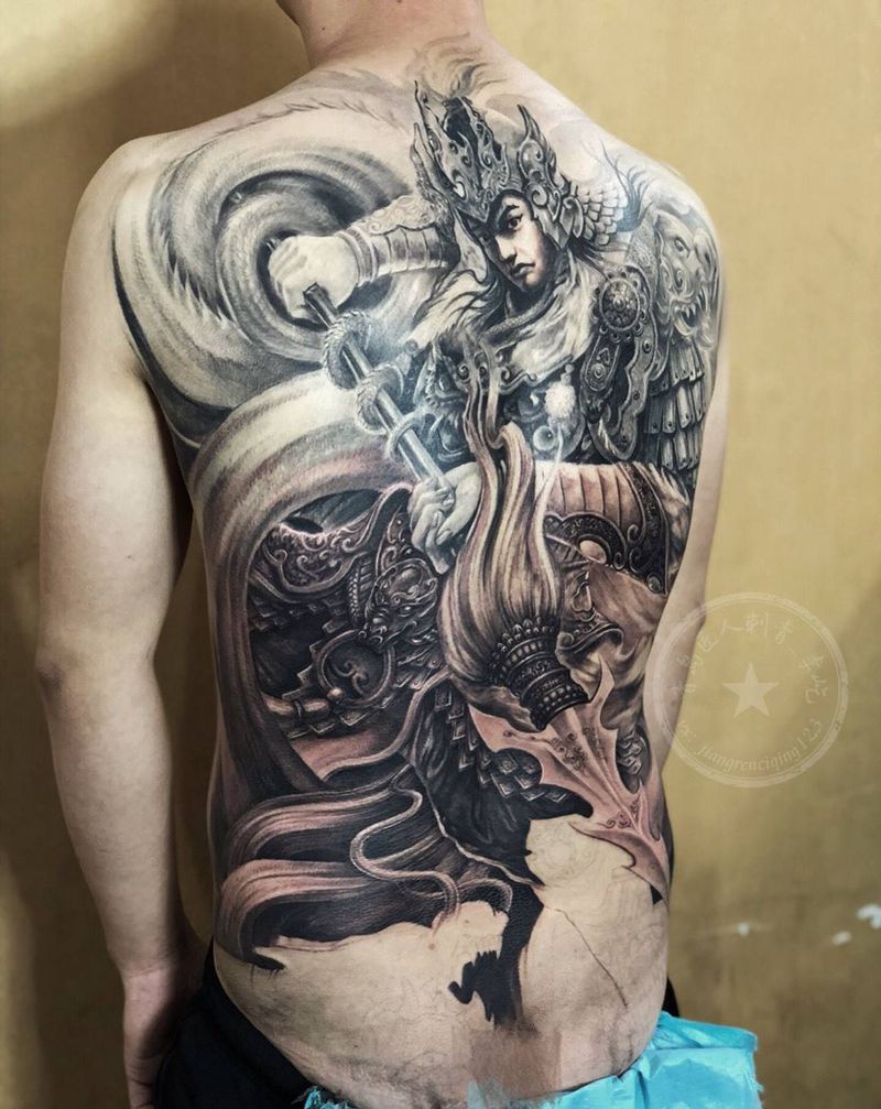 临摹 龙临纹身图片_背部新传统赵云纹身图案