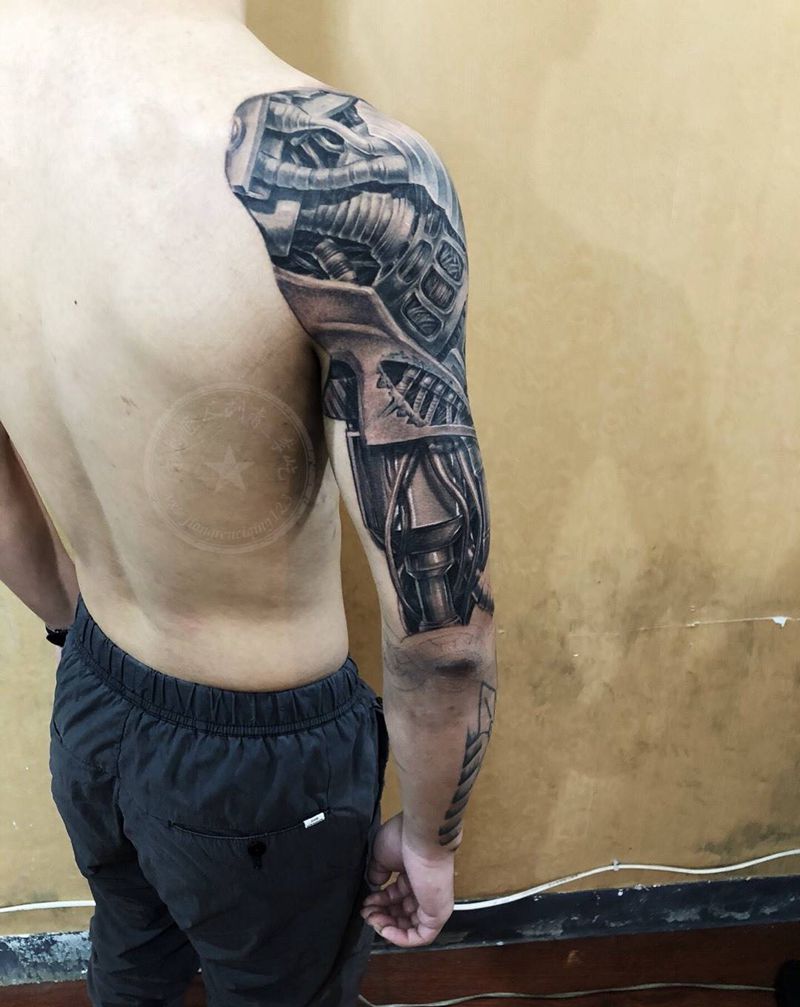 机械臂遮盖纹身图片_手臂欧美写实机械纹身图案