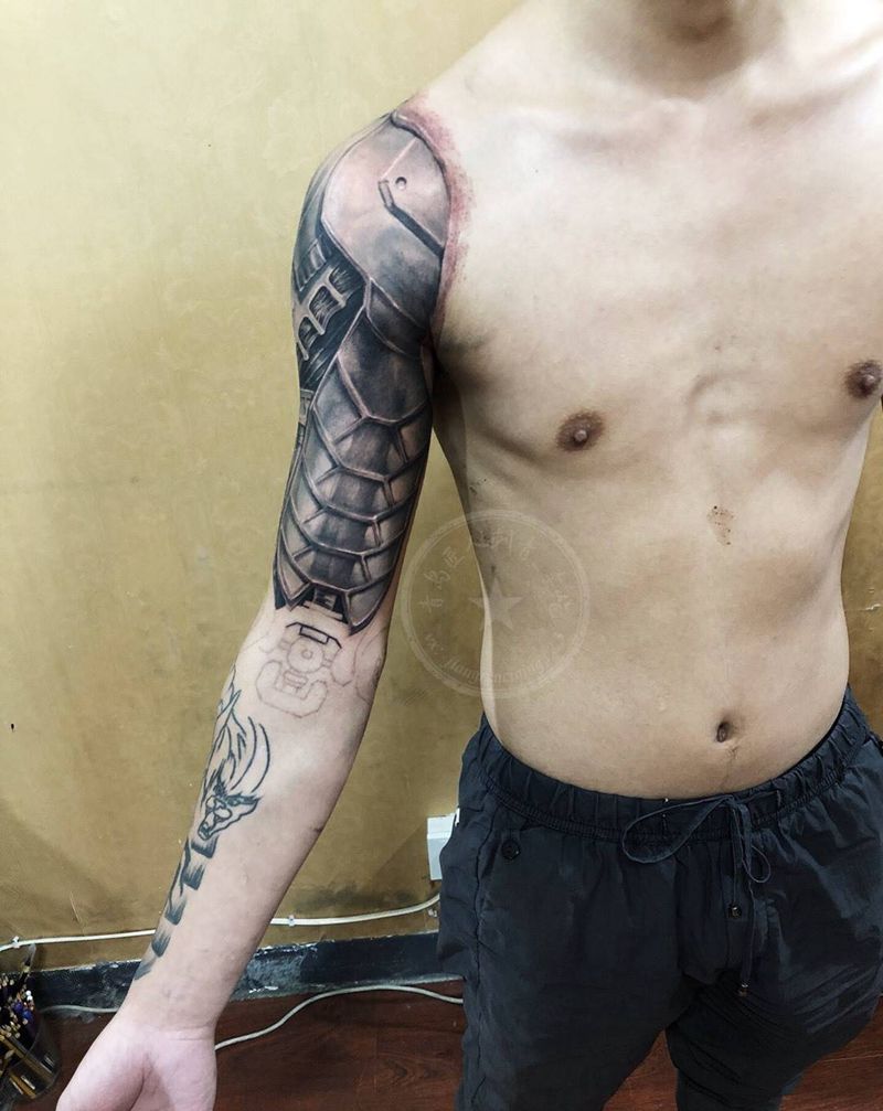 当前位置: 首页 >山东省青岛市纹身店-匠人刺青纹身图案>机械臂遮盖纹身图片_手臂欧美写实机械纹身图案