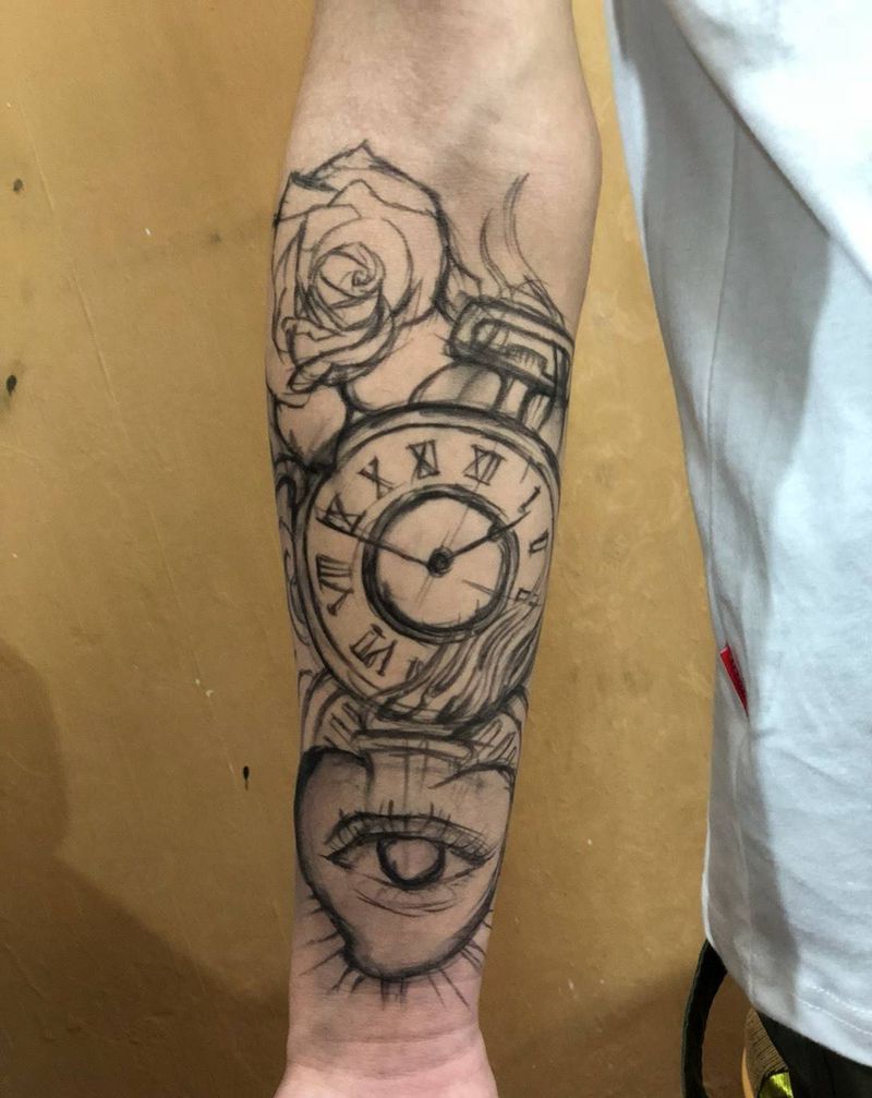 当前位置: 首页 >山东省青岛市纹身店-匠人刺青纹身图案>欧美小臂纹身图片_手臂欧美写实钟表d花眼睛纹身图案