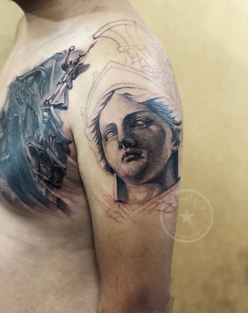 当前位置: 首页 >山东省青岛市纹身店-匠人刺青纹身图案>暴力遮盖纹身图片_胸部手臂欧美写实雅典娜 希腊神话纹身图案