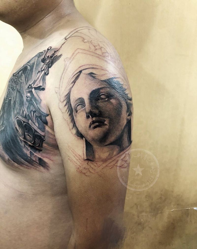 当前位置: 首页 >山东省青岛市纹身店-匠人刺青纹身图案>暴力遮盖纹身图片_胸部手臂欧美写实雅典娜 希腊神话纹身图案