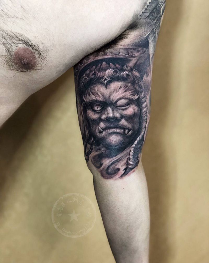 当前位置: 首页 >山东省青岛市纹身店-匠人刺青纹身图案>不动明王纹身图片_手臂欧美写实新传统不动明王纹身图案