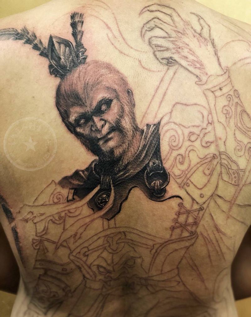 当前位置: 首页 >山东省青岛市纹身店-匠人刺青纹身图案>齐天大圣3满背未完成纹身图片_背部欧美写实孙悟空纹身图案