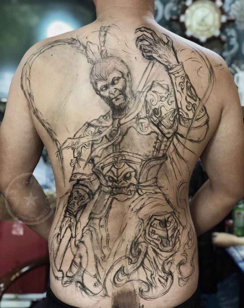 齐天大圣3满背未完成纹身图片_背部欧美写实孙悟空纹身图案