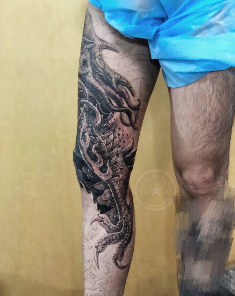 • T网红王老大花腿龙纹身图片_腿部新传统纹身图案