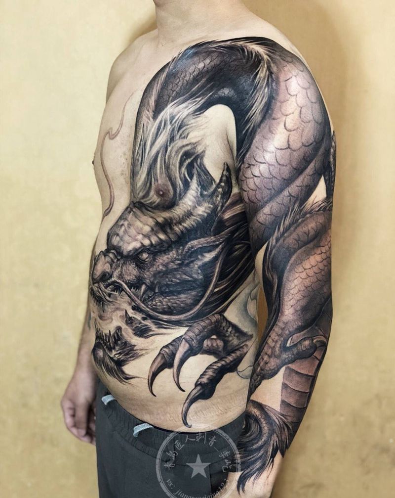 • T云龙九郎纹身图片_背部老传统云龙九郎纹身图案