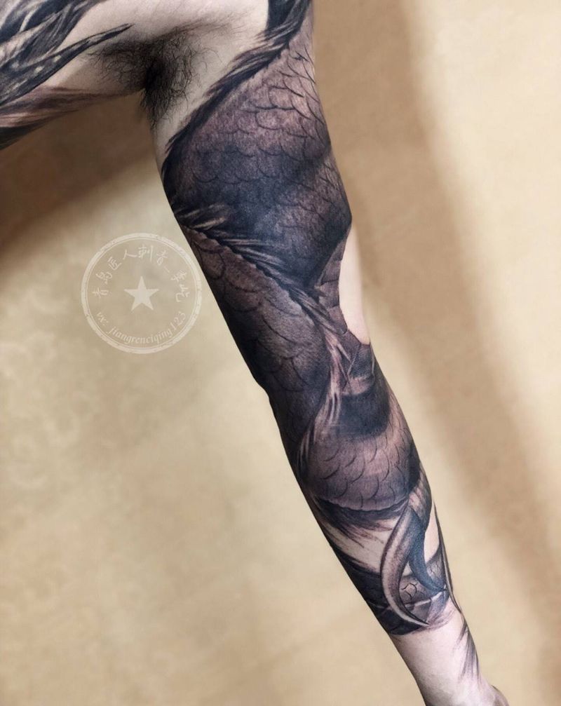 • T网红王老大花腿龙纹身图片_腿部新传统纹身图案
