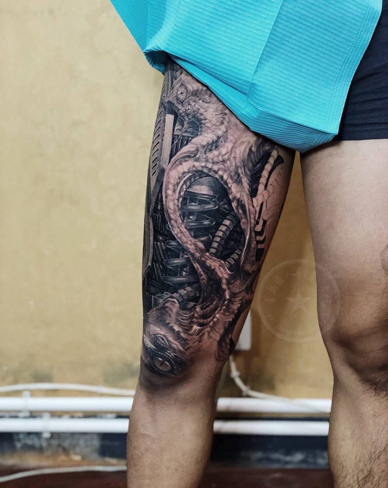 当前位置: 首页 >山东省青岛市纹身店-匠人刺青纹身图案>机械腿未完成纹身图片_腿部欧美写实机械纹身图案