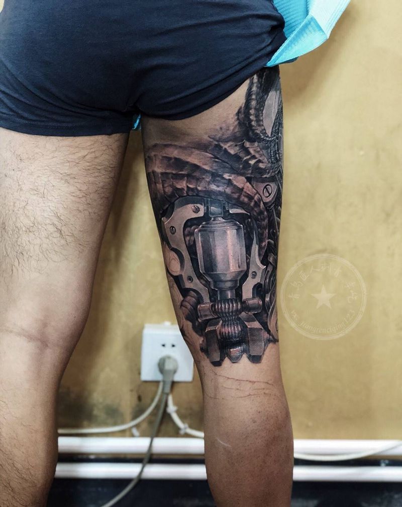 当前位置: 首页 >山东省青岛市纹身店-匠人刺青纹身图案>机械腿未完成纹身图片_腿部欧美写实机械纹身图案