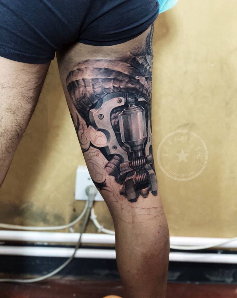 机械腿未完成纹身图片_腿部欧美写实机械纹身图案