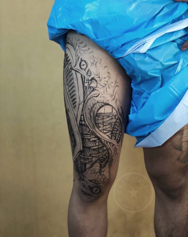 当前位置: 首页 >山东省青岛市纹身店-匠人刺青纹身图案>机械腿未完成纹身图片_腿部欧美写实机械纹身图案