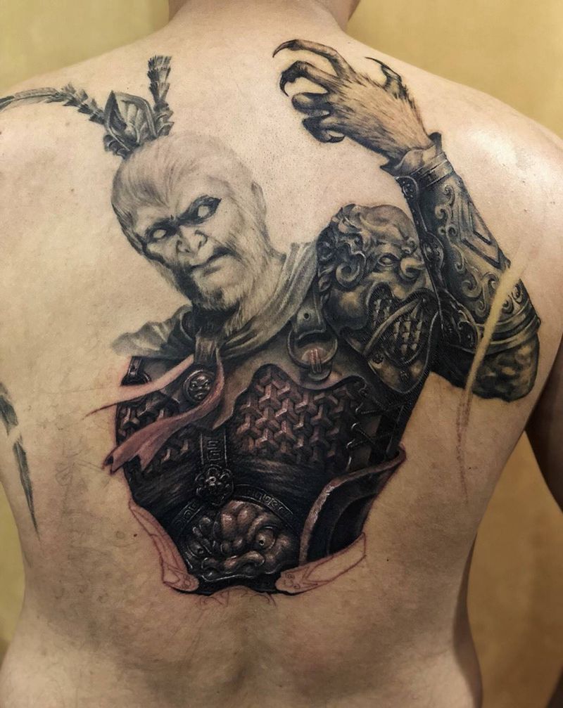 齐天大圣3纹身图片_背部新传统写实孙悟空齐天大圣纹身图案