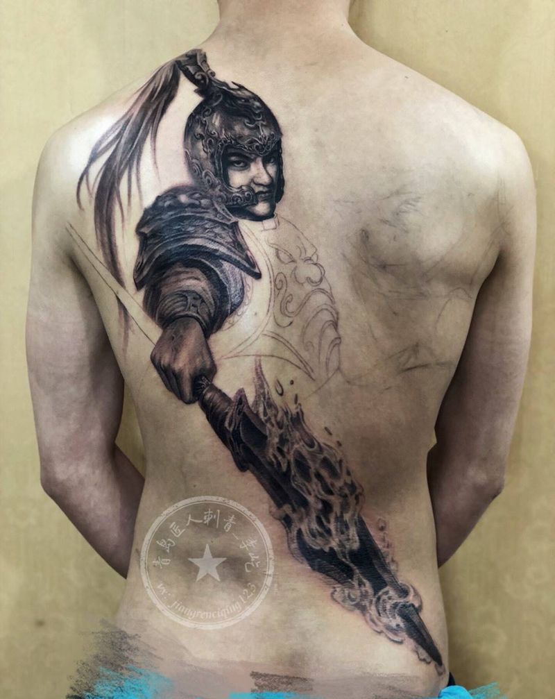 当前位置: 首页 >山东省青岛市纹身店-匠人刺青纹身图案>武神2 赵云 赵子龙纹身图片_背部新传统欧美写实赵云纹身图案