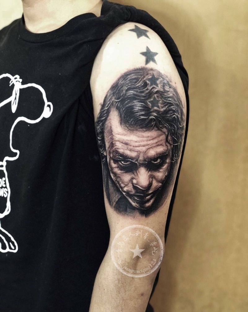 小丑肖像纹身图片_手臂新传统欧美写实肖像写实纹身图案