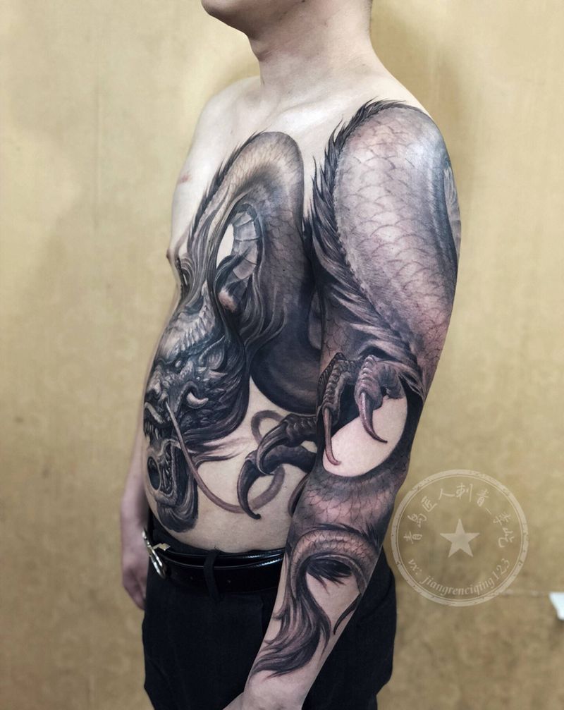 蟠龙(改版2)纹身图片_胸部手臂新传统欧美写实龙纹身图案
