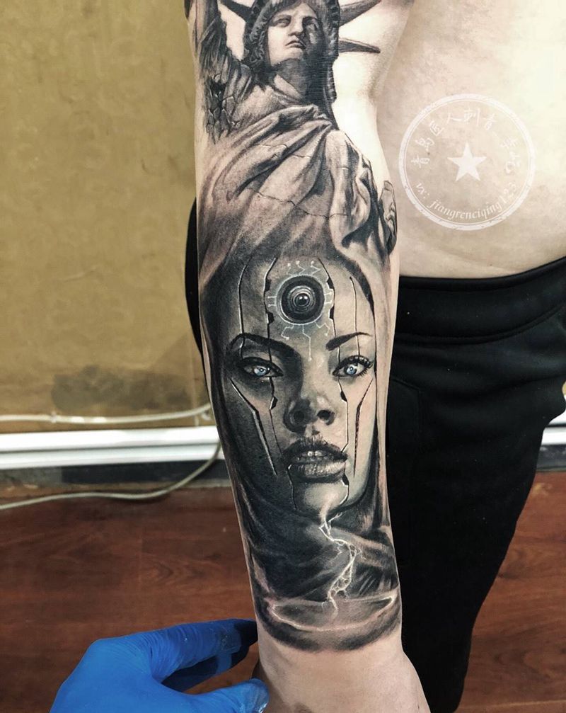当前位置: 首页 >山东省青岛市纹身店-匠人刺青纹身图案>接花臂 欧美花臂纹身图片_手臂欧美写实肖像欧美纹身图案