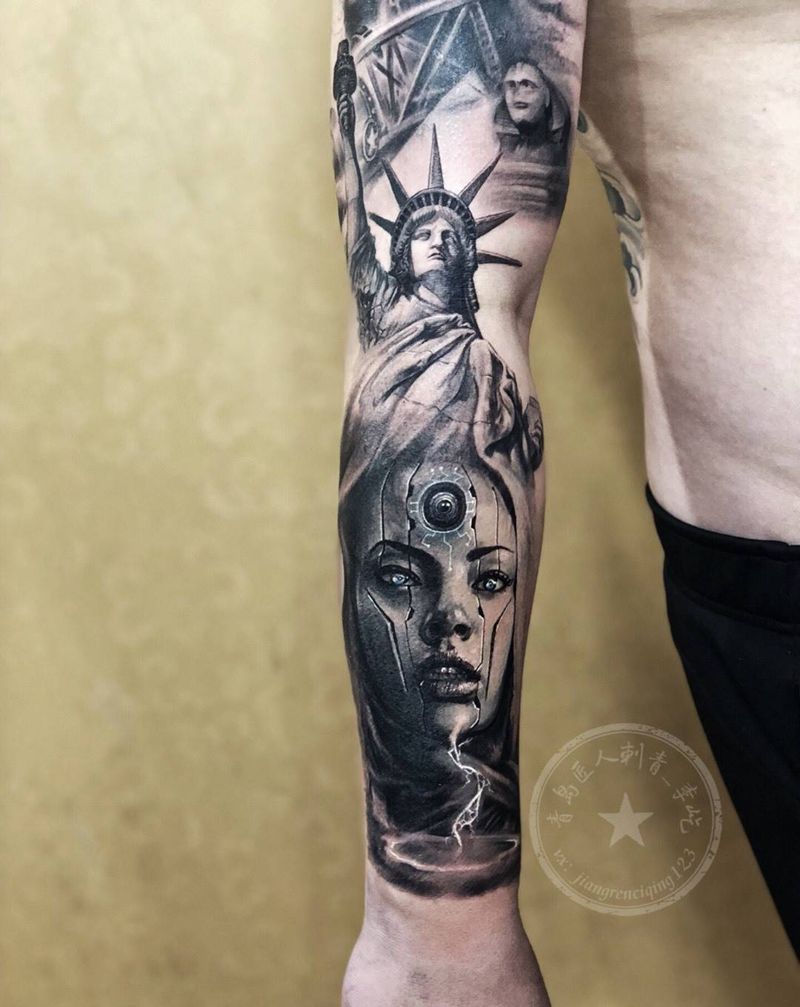 接花臂 欧美花臂纹身图片_手臂欧美写实肖像欧美纹身图案
