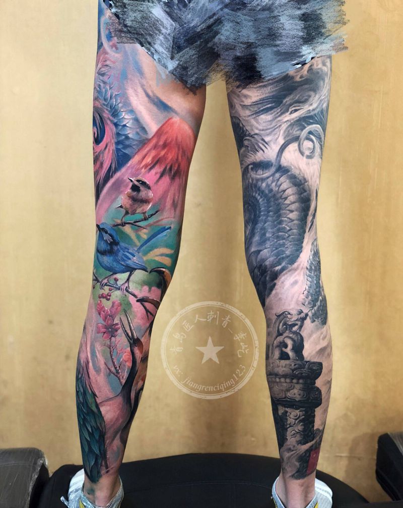 当前位置: 首页 >山东省青岛市纹身店-匠人刺青纹身图案>百鸟朝凤 凤凰纹身图片_腿部新传统欧美写实凤凰鸟纹身图案
