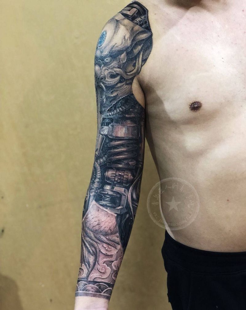 当前位置: 首页 >山东省青岛市纹身店-匠人刺青纹身图案>临摹机械雕龙臂(改版)纹身图片_手臂欧美写实机械石雕纹身图案
