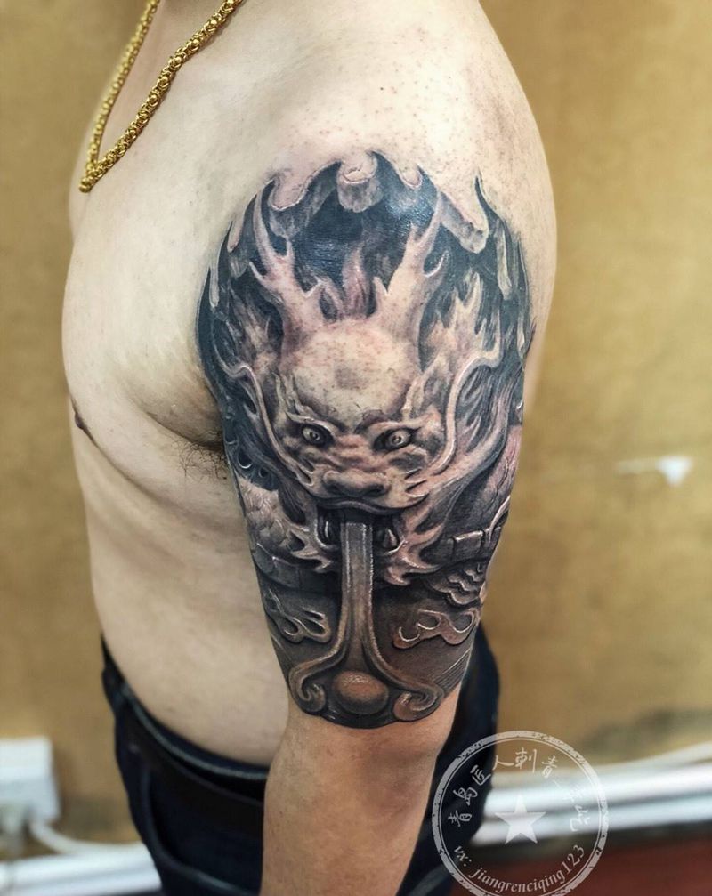 当前位置: 首页 >山东省青岛市纹身店-匠人刺青纹身图案>半臂石雕龙纹身图片_手臂欧美写实新传统石雕龙纹身图案
