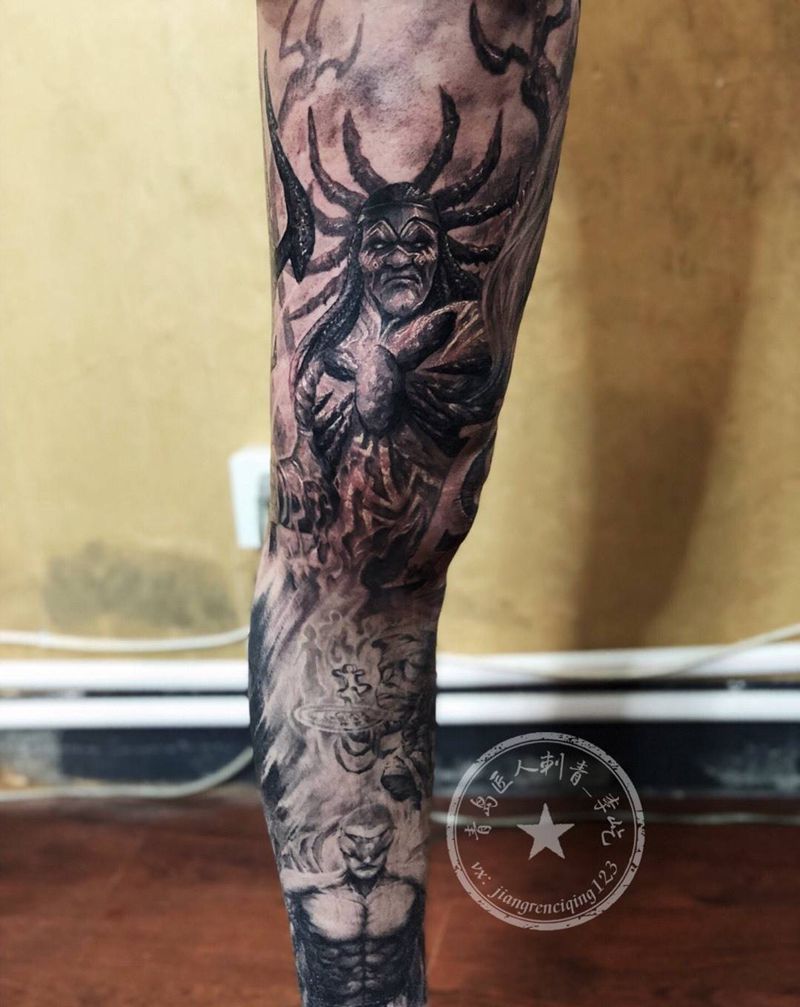 当前位置: 首页 >山东省青岛市纹身店-匠人刺青纹身图案>战神 欧美花腿纹身图片_腿部新传统欧美写实奎托斯希腊神话纹身图案