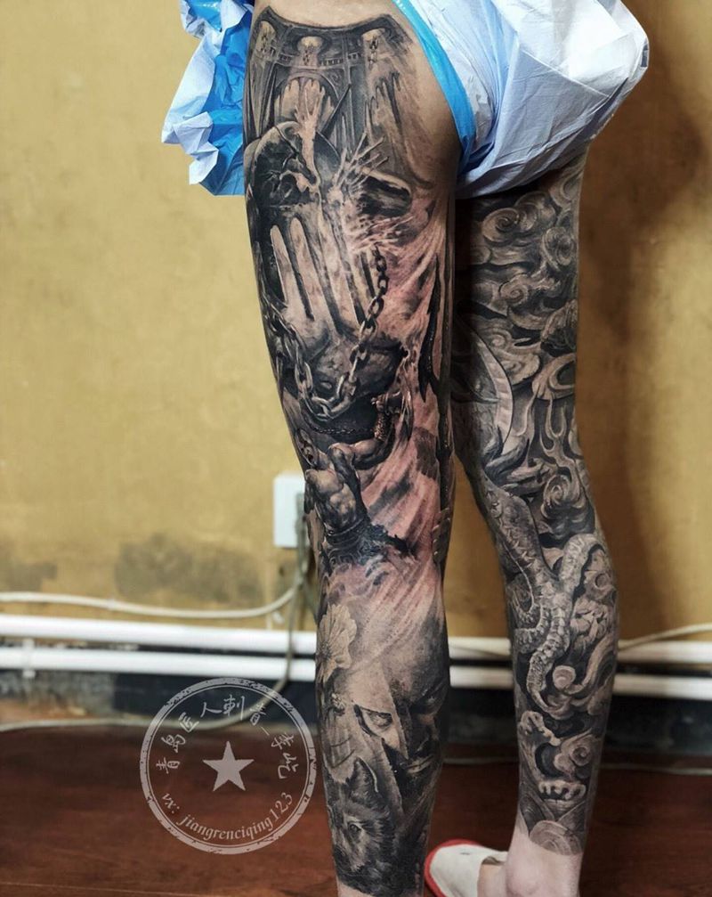 当前位置: 首页 >山东省青岛市纹身店-匠人刺青纹身图案>战神 欧美花腿纹身图片_腿部新传统欧美写实奎托斯希腊神话纹身图案