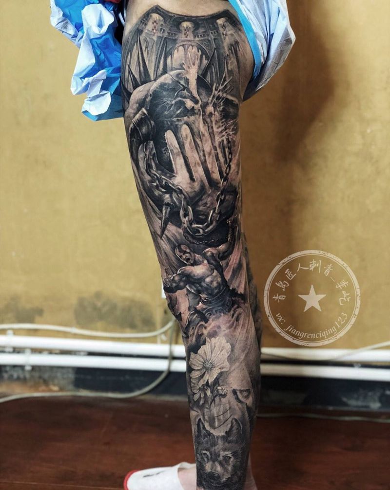 当前位置: 首页 >山东省青岛市纹身店-匠人刺青纹身图案>战神 欧美花腿纹身图片_腿部新传统欧美写实奎托斯希腊神话纹身图案